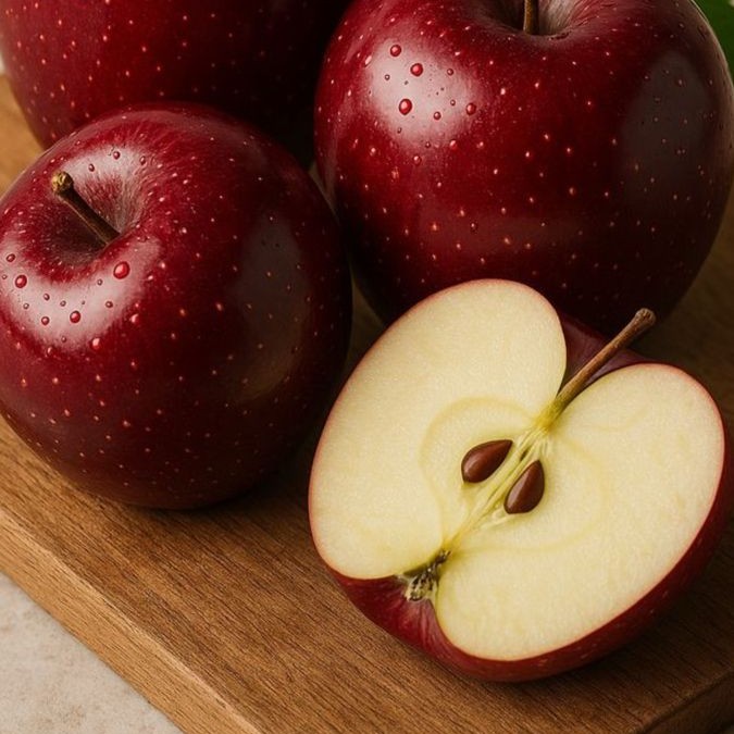 Kashmir apples, grown in the lush valleys of Kashmir, are known for their crisp texture and sweet-tart flavor. These apples are a great source of essential vitamins like Vitamin C, which helps boost immunity and promote skin health. They are also rich in antioxidants, which help reduce oxidative stress and inflammation in the body. Ideal for snacking, they can also be used in baking, such as pies or crisps, or incorporated into salads. The high fiber content in Kashmir apples aids digestion, promotes heart health, and helps regulate blood sugar levels. Enjoy them fresh, or in your favorite dessert recipes.